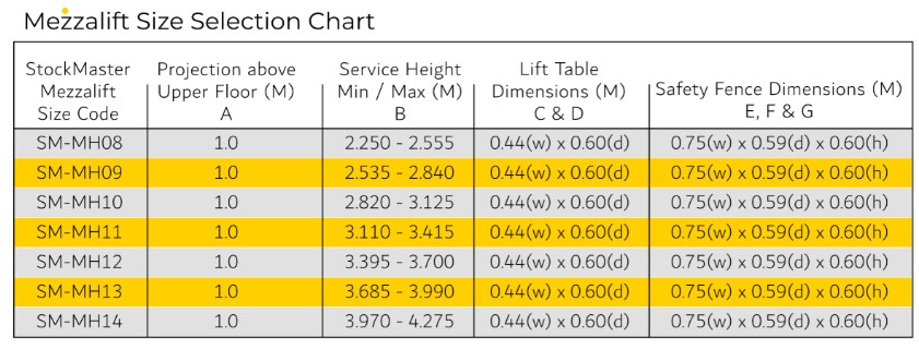 You’ll find a Mezzalift to suit your mezzanine. All floor heights are catered for from 2250mm to a high 4275mm.